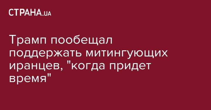Президент США Дональд Трамп пообещал поддержать жителей Ирана, которые в последние дни выходят на массовые протесты, "когда для этого придет время". Об этом он написал в Twitter.