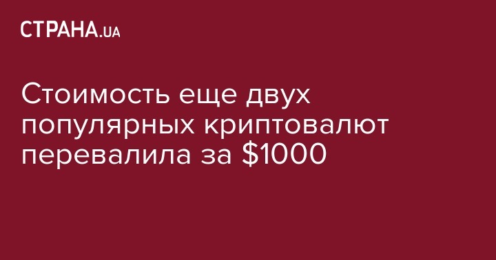 Стоимость еще двух популярных криптовалют перевалила за $1000