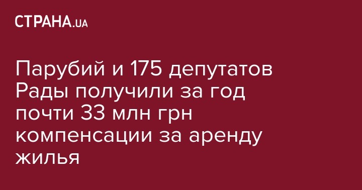 Председатель Верховной Рады Андрей Парубий и еще 175 депутатов получили 32,6 млн гривен из государственного бюджета для компенсации стоимости аренды жилья или найма гостиничного номера в 2017 году. Об этом говорится в ответе аппарата Рады на запрос Украинских новостей.