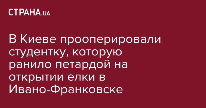 Пострадавшая во время открытия елки в Ивано-Франковске студентка может лишиться зрения на одном глазу. У нее отмер зрительный нерв и шансов, что она будет видеть левым глазом хоть что-то, почти нет.