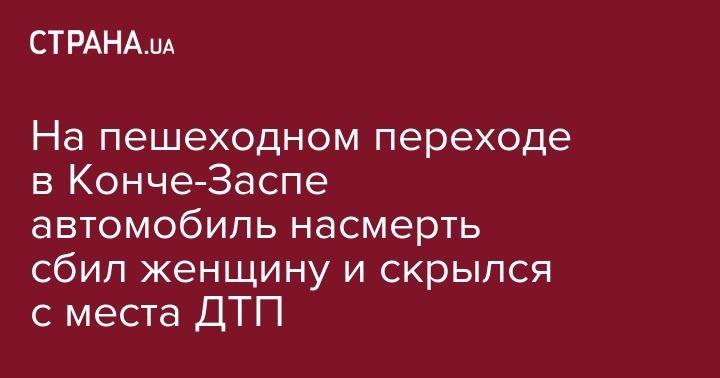 В Конче-Заспе под Киевом автомобиль сбил женщину на переходе Новообуховской трассы у санатория "Жовтень" и скрылся с места происшествия. Переходившая дорогу женщина погибла на месте. Ее личность устанавливается.