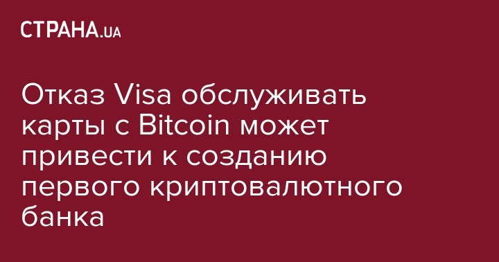 Отказ Visa обслуживать карты с Bitcoin может привести к созданию первого криптовалютного банка