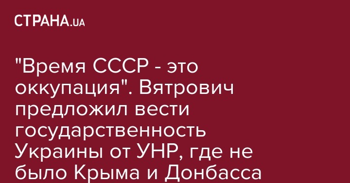 "Время СССР - это оккупация". Вятрович предложил вести государственность Украины от УНР, где не было Крыма и Донбасса