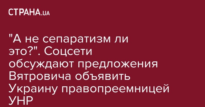 "Если преемственность от УНР, то Украина не имеет права на место в ООН, которое получила как правопреемница УССР. Все договора о границах автоматически денонсируются. В соответствии с заявлением Вятровича (и направляемой им государственной политикой) непризнанные республики на Донбассе получают свою преемственность от Донецко-Криворожской республики, автономии в составе РСФСР. За что тогда скоро четыре года как гибнут люди?" – задается вопросом нардеп.