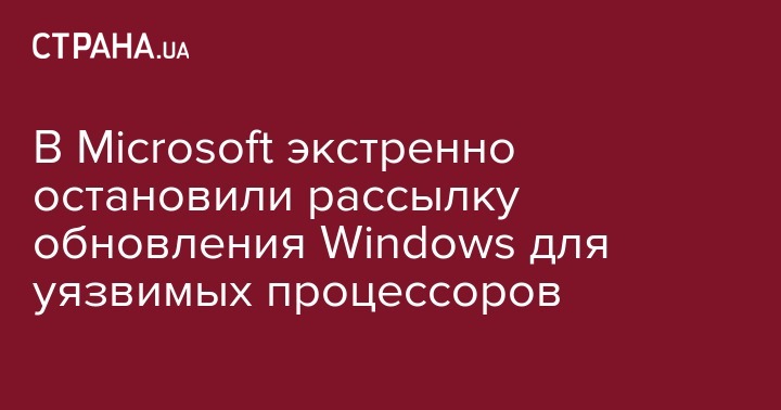 В Microsoft экстренно остановили рассылку обновления Windows для уязвимых процессоров