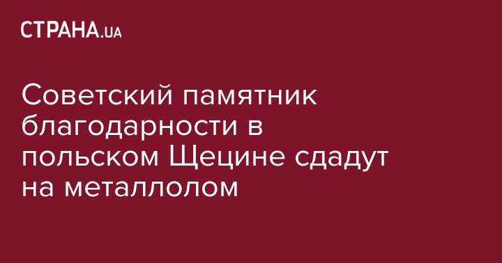 Элементы отделки советского Памятника благодарности, демонтированного в польском Щецине, местные власти отдадут на металлолом. Ранее их планировалось перенести на Центральное кладбище.