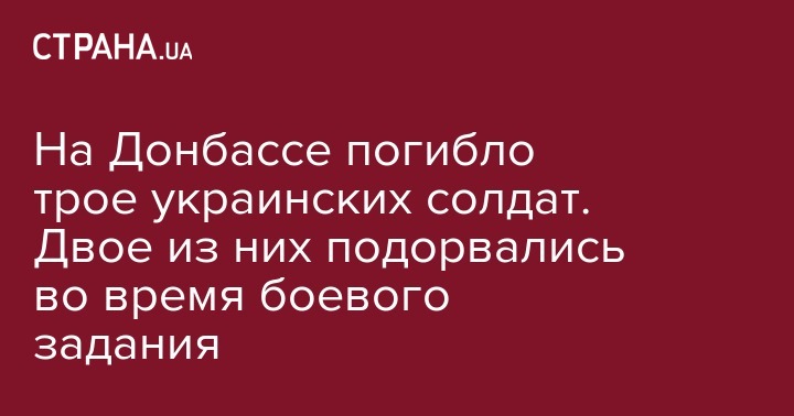 На Донбассе погибло трое украинских солдат. Двое из них подорвались во время боевого задания