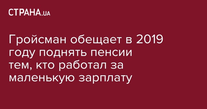 Гройсман обещает в 2019 году поднять пенсии тем, кто работал за маленькую зарплату
