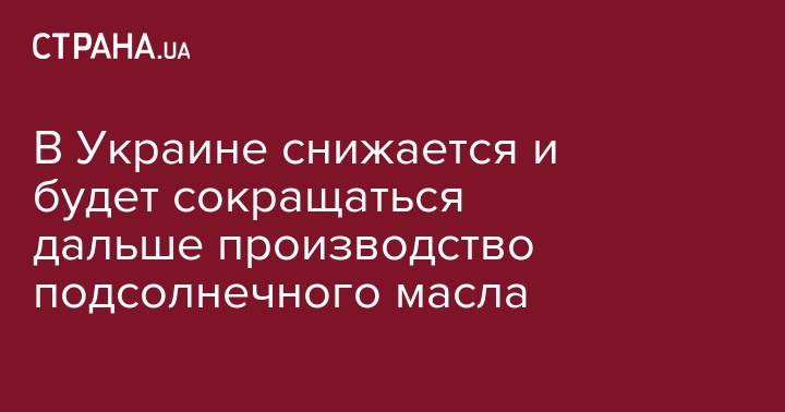 В Украине снижается и будет сокращаться дальше производство подсолнечного масла