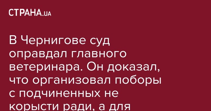 В Чернигове, Деснянский суд оправдал замначальника областного управления Госпродпотребслужбы (экс-начальника управления ветмедицины региона) Виктора Кульбако, которого обвиняли в организации поборов с подчиненных. Об этом сообщает портал 368.media. Данное дело может стать прецедентом, так как оправдания черниговского ветеринара могут взять на вооружение и другие чиновники, обвиняемые во взятках.