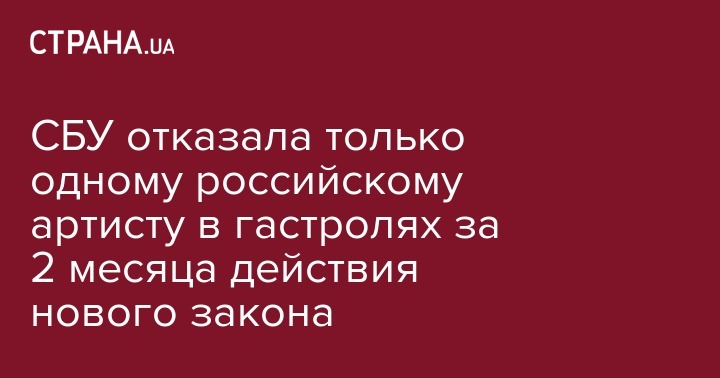 СБУ отказала только одному российскому артисту в гастролях за 2 месяца действия нового закона