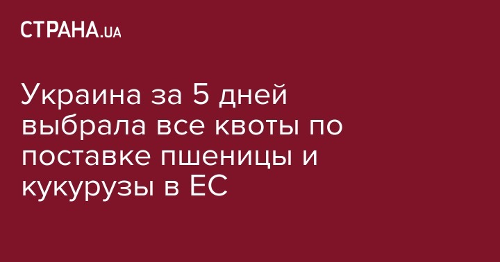 Украина за 5 дней выбрала все квоты по поставке пшеницы и кукурузы в ЕС