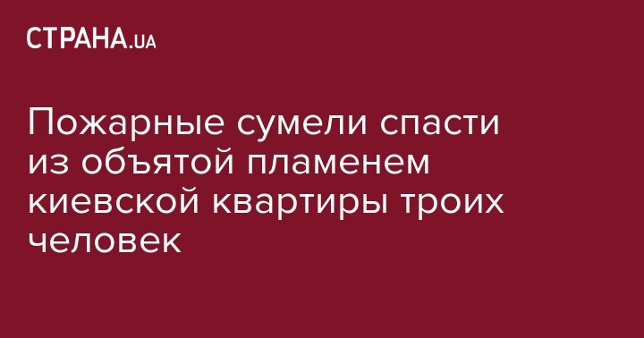 Во время тушения пожара в жилом доме в Киеве пожарные спасли троих человек из объятой пламенем квартиры. Еще шесть человек из соседнего жилого помещения также благополучно эвакуированы, среди них было двое детей. Об этом сообщает пресс-служба ГСЧС Украины.