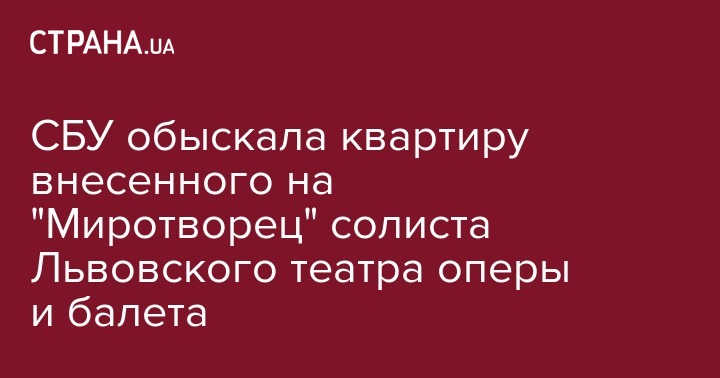 "В настоящее время оперативники СБУ проводят санкционированные судом следственные действия (обыск) в квартире солиста Львовского театра оперы и балета им. Соломии Крушельницкой, которого активисты сайта "Миротворец" включили в свою базу за якобы антиукраинские взгляды", - отметил представитель облуправления СБУ.