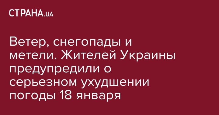 Ветер, снегопады и метели. Жителей Украины предупредили о серьезном ухудшении погоды 18 января