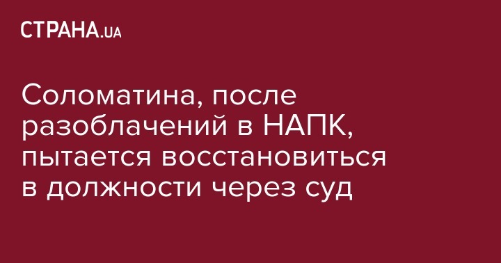 Экс-глава департамента финансового контроля и мониторинга способа жизни НАПК Анна Соломатина, которая выступила с разоблачительными показаниями против своего руководства,  пытается восстановится на должности через суд. Об этом она сообщила в Facebook.