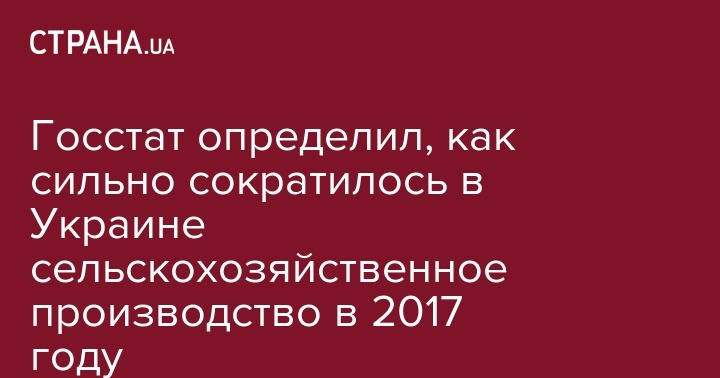Производство продукции сельского хозяйства в Украине (без учета временно территории Крыма и Севастополя и части зоны проведения АТО) в 2017 году сократилось на 2,7%.