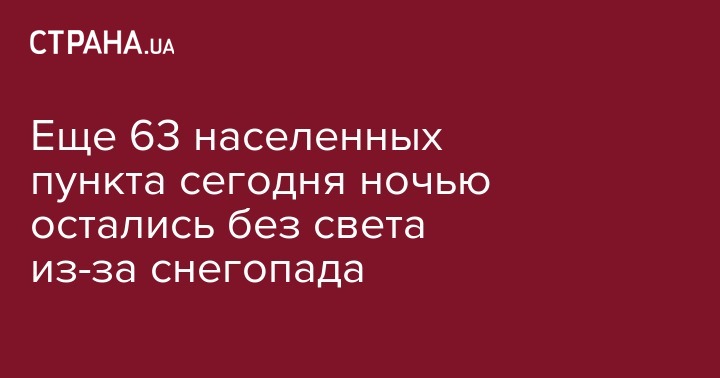 В Украине сегодня ночью еще 63 населенных пунктов в 5 областях остались без света из-за непогоды. Об этом сообщает ГосЧС.