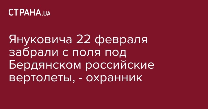 На этих вертолетах Янукович был вывезен в российскую Анапу. 23 февраля из Анапы он был доставлен на самолете в Крым, в частности в Ялту и на базу Черноморского флота РФ. Там часть охранников покинули экс-президента, который отбыл в Россию.