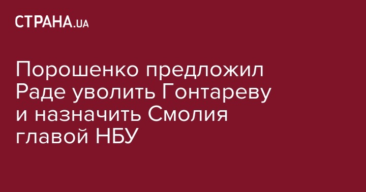 Президент Украины Петр Порошенко внес в Верховную Раду проекты постановлений об увольнении Валерии Гонтаревой с поста главы НБУ и назначения на ее место Якова Смолия, который давно ходит в претендентах на эту должность.