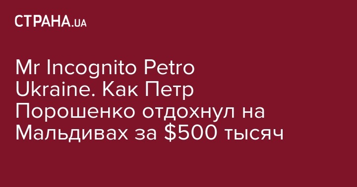 Президент фигурировал на курорте на Мальдивах под именем Mr Incognito Petro Ukraine. На один из самых дорогих курортов в мире, который размещен на отдельном острове, прилетели 8 человек взрослых и два ребенка (перелет туда и обратно с ожиданием обошелся в 188 тысяч долларов).