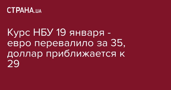Курс НБУ 19 января - евро перевалило за 35, доллар приближается к 29