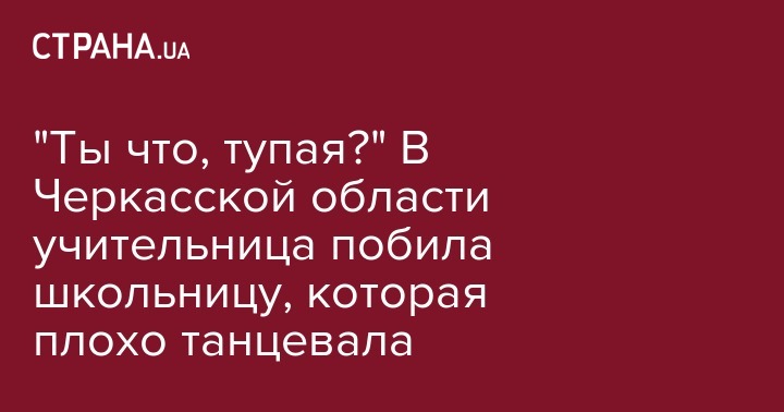 В городе Ватутино Черкасской области учительница танцев ударила 11-летнюю ученицу по голове. Об этом сообщает УНН со ссылкой на сообщения пострадавшей девочки, которая сейчас находится в Ватутинской больнице с сотрясением мозга.