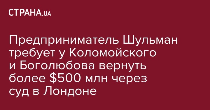 Бывший бизнес-партнер Игоря Коломойского Вадим Шульман требует у него и Геннадия Боголюбова вернуть более $500 миллионов. Об этом говорится в иске, поданном в лондонский суд, сообщает Кyivpost.