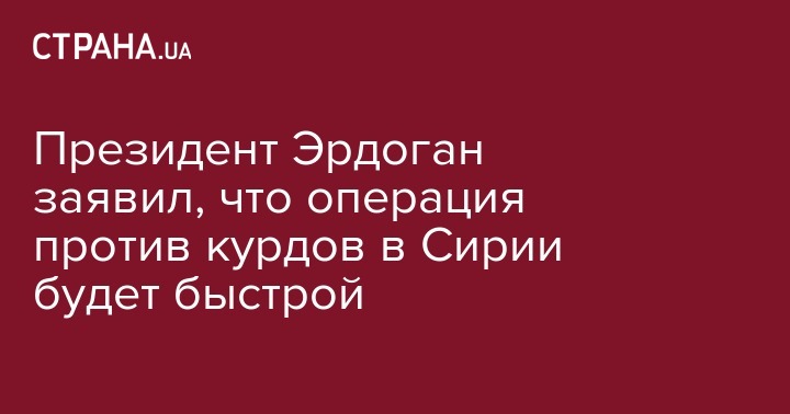 Президент Эрдоган заявил, что операция против курдов в Сирии будет быстрой