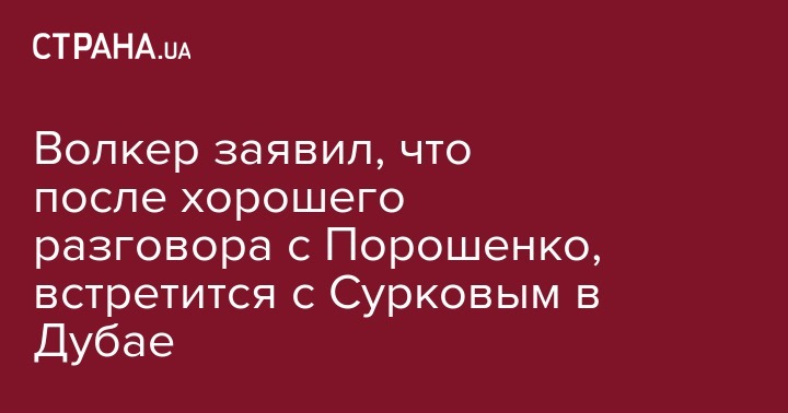 Волкер заявил, что после хорошего разговора с Порошенко, встретится с Сурковым в Дубае