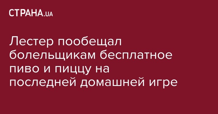 Руководство клуба "Лестер" пообещало угостить своих болельщиков бесплатными пивом и пиццей на последней домашней игре в этом сезоне в рамках 37 тура английской Премьер-лиги против "Эвертона",  сообщает УНН со ссылкой на сайт клуба.