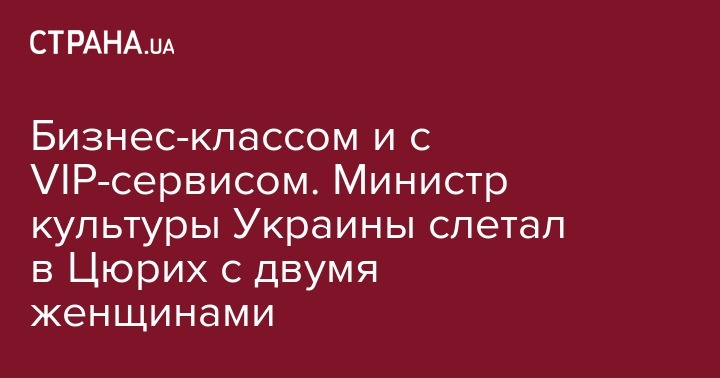 Бизнес-классом и с VIP-сервисом. Министр культуры Украины слетал в Цюрих с двумя женщинами