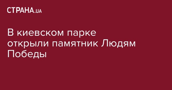 7 мая в киевском Парке "Победа" состоялось открытие памятника ветеранам Великой Отечественной войны – "Люди Победы". Скульптурная композиция - два ветерана в военной форме, мужчина и женщина, грустно и трогательно смотрящие друг на друга - установлена инициативной группой киевлян при поддержке телеканала "Интер" и Организации ветеранов Украины.