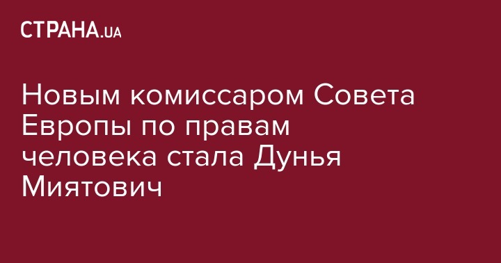 Новым комиссаром Совета Европы по правам человека стала Дунья Миятович, сообщил постоянный представитель Украины при Совете Европы Дмитрий Кулеба.