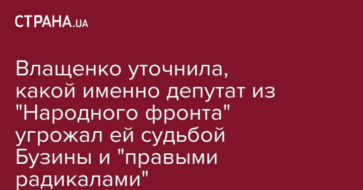 "До эфира с Портновым позвонил депутат из "Народного фронта" и пригрозил, сказав: "Ты знаешь о судьбе Бузины, – сказала она. – Он пригрозил, если будет эфир, правыми радикалами и другими людьми". По ее словам, этот депутат – один из организаторов травли телеканала в соцсетях, однако его фамилию напрямую Влащенко не называла.