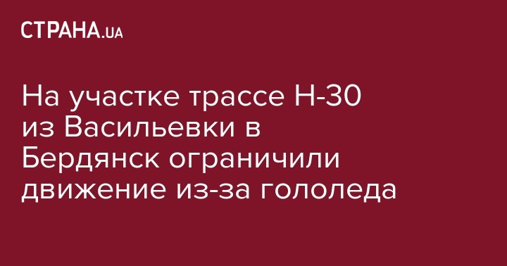 Движение автомобилей на трассе Н-30 Васильевка-Бердянск в Запорожской области ограничили из-за гололеда. Об этом сообщает пресс-служба ГосЧС.