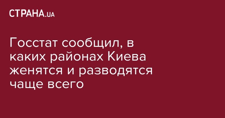 "Самый высокий уровень брачности (16,5 регистраций на 1000 человек) — в Шевченковском районе, самый низкий (по 7,8 на 1000 человек) — в Оболонском и Подольском районах.