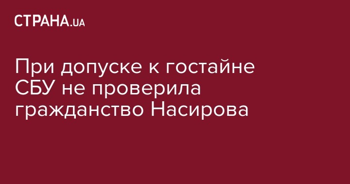 В Службе безопасности Украины не проверяли информацию о гражданстве других стран у главы Государственной фискальной службы Романа Насирова при допуске к государственной тайне. Об этом сообщает проект "Марлин".