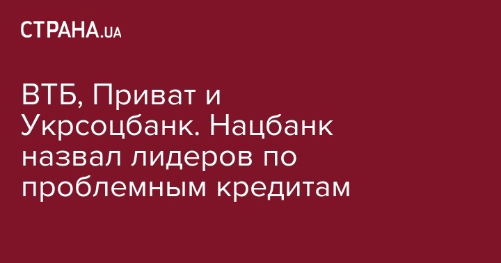 Нацбанк обнародовал рейтинг банков по проблемным кредитам. Лидируют в нем ВТБ, национализированный "Приватбанк" и "Укрсоцбанк", приобретенный "Альфа-банком". У них больше всех проблемных кредитов, передает "Экономическая правда".
