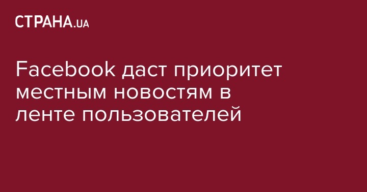 Социальная сеть Facebook опять переработает ленту новостей, предоставив приоритет местным новостям. Об это сообщил на своей странице основатель социальной сети Марк Цукерберг.