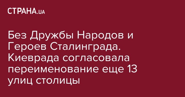 Без Дружбы Народов и Героев Сталинграда. Киеврада согласовала переименование еще 13 улиц столицы