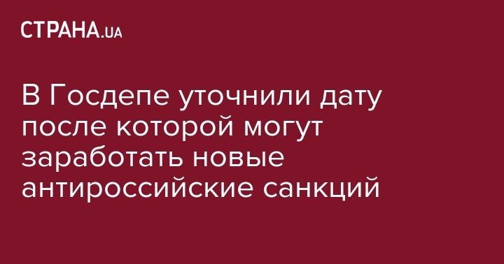 В Госдепе уточнили дату после которой могут заработать новые антироссийские санкций