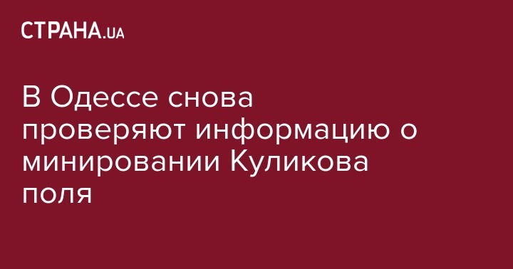 Одесская полиция проверяет информацию о минировании Куликова поля. В Национальной полиции в Одесской области сообщили, что на этот раз анонимное сообщение поступило в 11.23. Позвонили в дежурную часть Приморского отдела полиции. Сообщили, что занимирована территория Куликова поля.