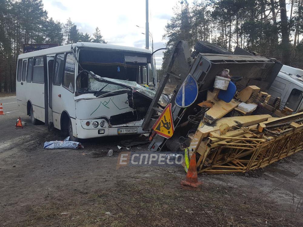 На выезде из Киева маршрутка с пассажирами врезалась в грузовик и перевернула его