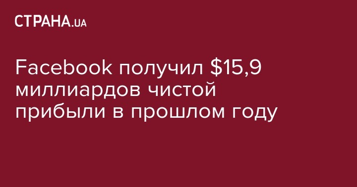Компания Facebook получила $15,9 млрд чистой прибыли в прошлом году.