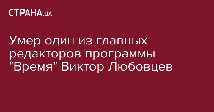 "Не стало известного тележурналиста Виктора Любовцева. О его уходе из жизни сообщили близкие", - говорится в заявлении телеканала.