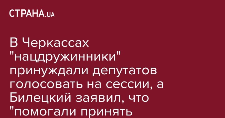 Глава партии "Национальный корпус" внефракционный народный депутат Андрей Билецкий подвердил, что среди гражданских лиц, которые "помогли" депутатам в Черкассах принять бюджет на 2018 год были представители так называемых "национальных дружин".