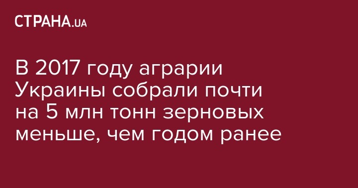 По итогам 2017 года сельскохозяйственные предприятия Украины собрали урожай в 61,3 млн тонн зерновых и зернобобовых культур. Площадь посевов составила 14,5 млн га. В 2016 году урожай зерновых в Украине составил 66 млн тонн.