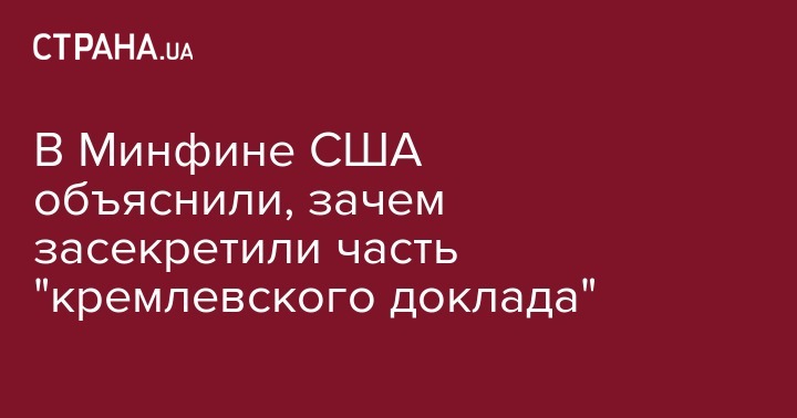 В Минфине США объяснили, зачем засекретили часть "кремлевского доклада"