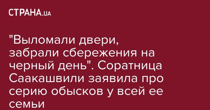 "Утром вчера в 6 часов они пришли к моей бабушке, в 7 часов к моим родителям. Они искали какие-то документы, информацию, которая подтверждает, кто и как финансировал акции протеста. Ни мои родители, ни бабушка не имеют никакого отношения к Михаилу Саакашвили и его политической силе. Из дома моих родителей были вынесены все сбережения, которые они откладывали на старость. Моя мама - педагог, папа - инженер. Это небогатые люди, и те деньги, которые лежали у них дома, это то, что они собирали всю жизнь, это их зарплаты, их личные сбережения. Из дома вынесли компьютер, это обыкновенный старый стационарный компьютер, на котором работала моя мама. Как я понимаю, вернуть и сбережения и технику мы можем только через суд. Мы обязательно попытаемся это сделать", - рассказала нам Петренко.